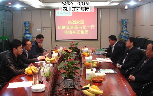 11月27日,新疆尼勒克縣縣委書(shū)記吳奉軍一行四人到集團(tuán)考察訪問(wèn)。集團(tuán)董事長(zhǎng)、總裁趙思儉,總裁助理?xiàng)畲笃降扰c吳書(shū)記一行進(jìn)行了親切的溝通和交流。
