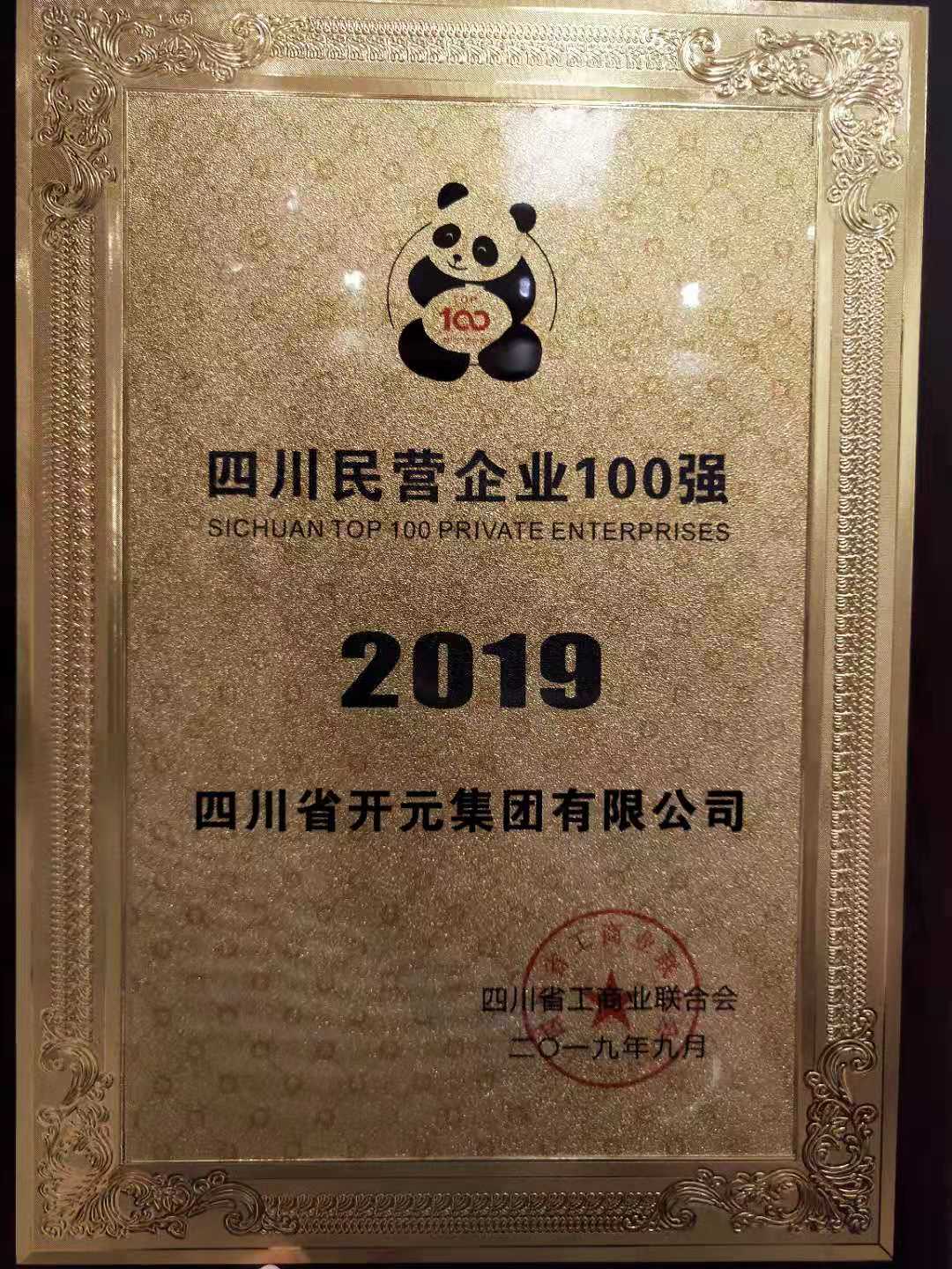 開元集團憑借絕對實力,再次榮登“2019四川民營企業(yè)100強”榜單,并作為獲獎民營企業(yè)代表參加了頒獎典禮。